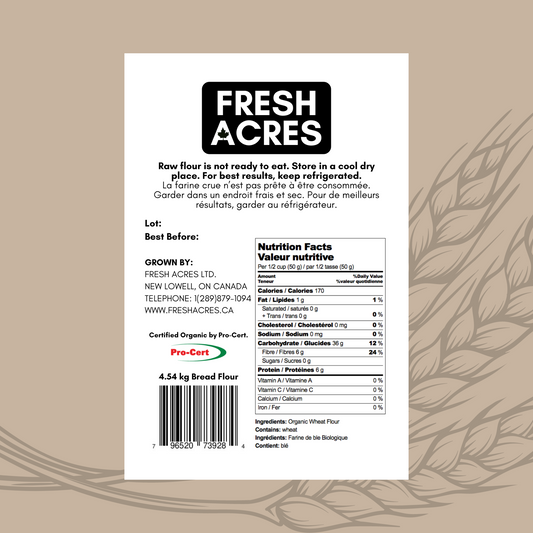 We are excited to offer small batch artisanal flour milled from grain that we grow along with our neighbouring Organic Farms! Our flour products are only available online.